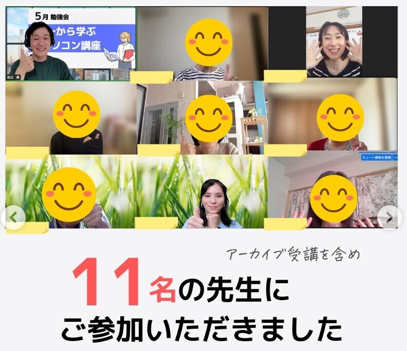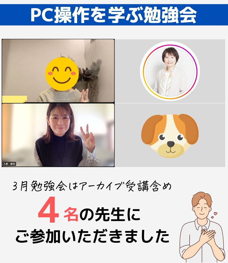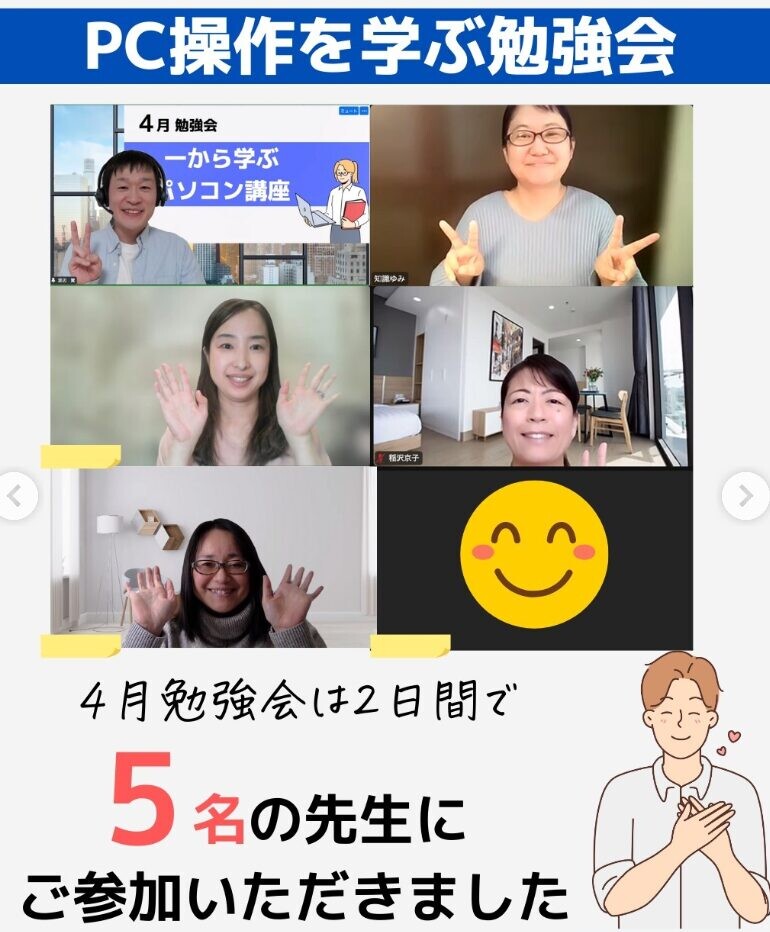 (勉強会はどうでしたか?)すごく初歩的なことがわかってないことがわかりましたし、限られた時間の中でいかに効率を上げて作業するか大切だと思いました。子供達との時間も大切にしたいと思っていますが、PC作業に入るとあっという間に1日が終わり後悔することが多いので「時短」しようと思いました。